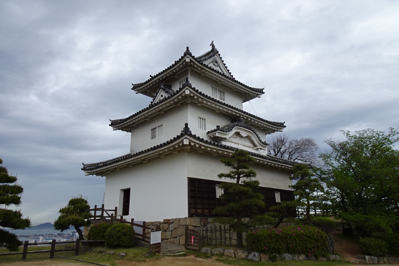 天守閣は小ぢんまりとして、上まで登れます。天守閣の下からでも、四方の見事な景色が見渡せ、瀬戸内海が一望できます。