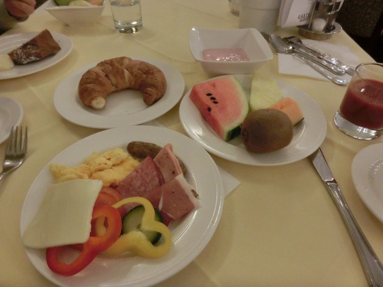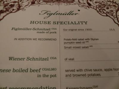 ウィーン名物のシュニッツェル・・・日本のとんかつくらいに思い一皿ずつ注文しましたが、びっくりな大きさ。