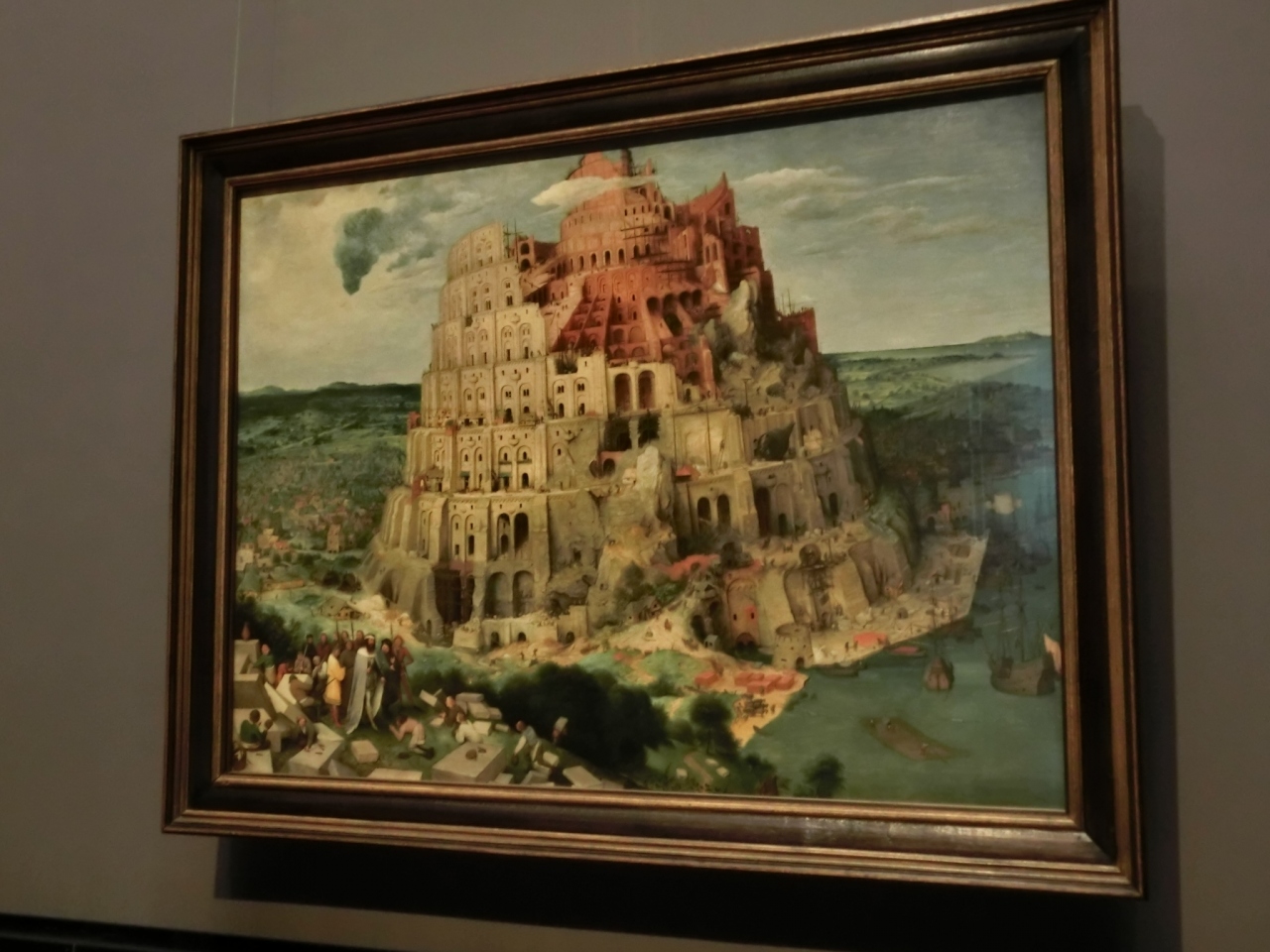 ブリューゲル、ベラスケス、・フェルメールなどの有名絵画が二階にあり、見ごたえあります。ブリューゲルのバベルの塔の繊細さには驚かされます。