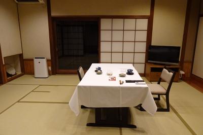 和室でしたが、低いテーブルとイスが置かれ、二食とも部屋食でした。
