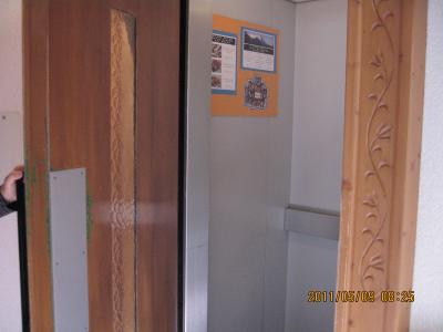 なんと手で開けるドアがあって、乗り込むと中には扉がなく、エレベーターが動くと各階のドアが動いていくのが見ます!!