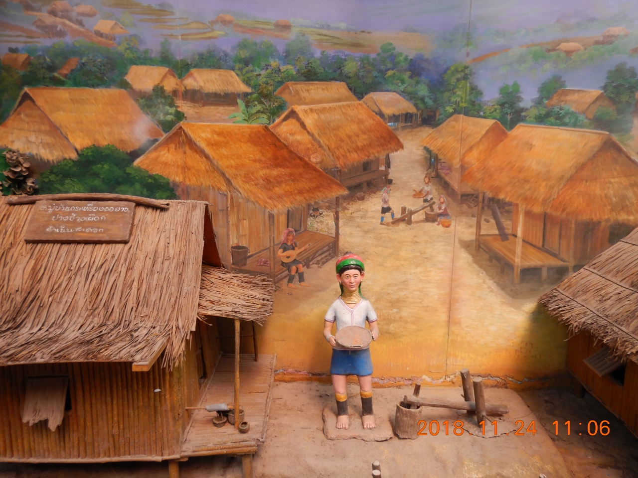 エレファント・ビレッジに入ったら、首長族(カレン族)の居住区のジオラマがありました!!