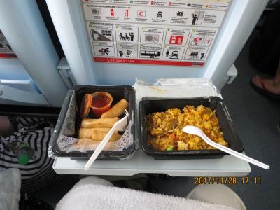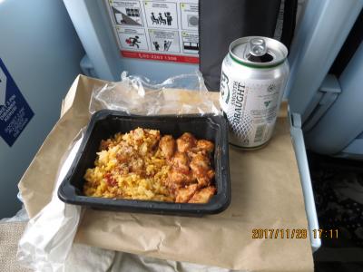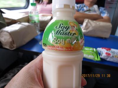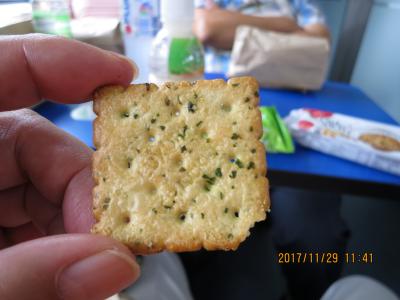 乗車して暫くしたら、女性の係員が豆乳とクラッカーなどを配ってきました!!