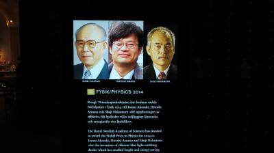 この年は、3人の日本人が青色発光ダイオードを開発してノーベル賞受賞が決まり、3人の顔写真が自慢気に飾ってありました。