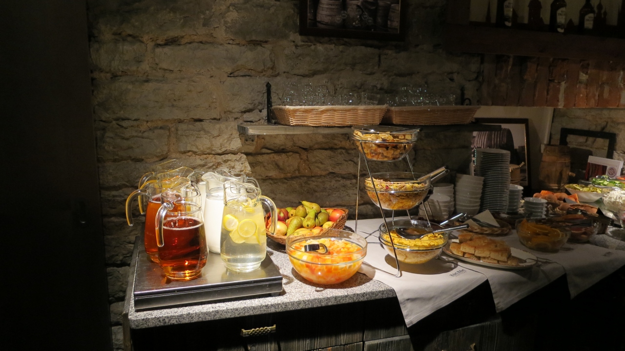石造りの落ち着いたホテルで、地下にあるレストランは、洞窟の中にあるような、厳かな雰囲気でした。
