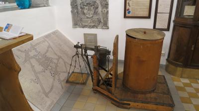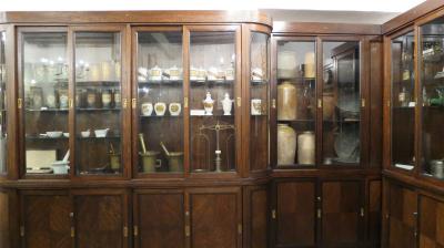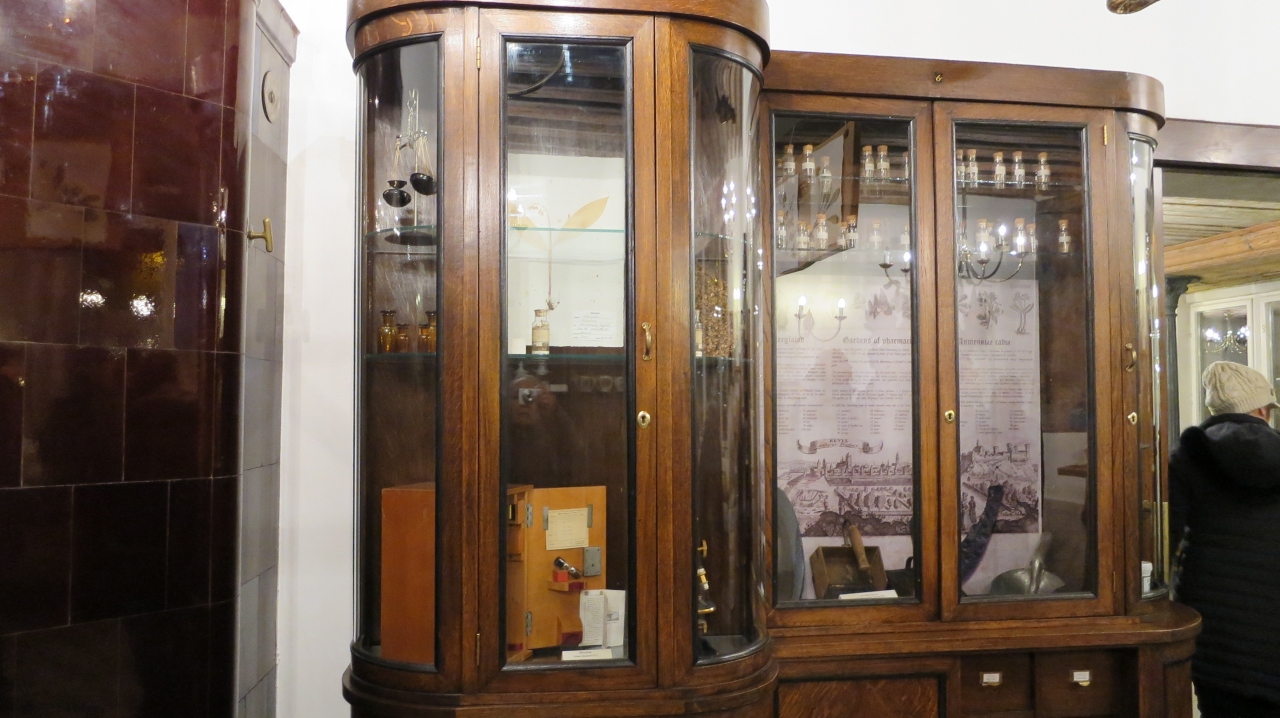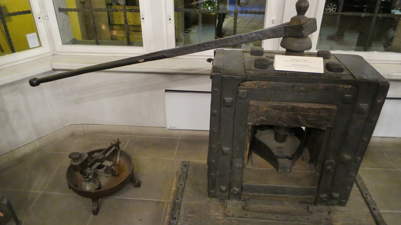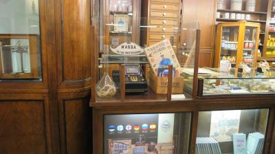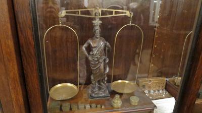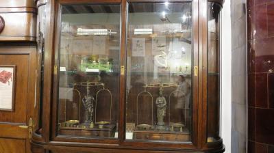 15世紀の創業当時のものだろうか? 古い天秤や台秤、すりこぎ器、抽出器などがありました!!