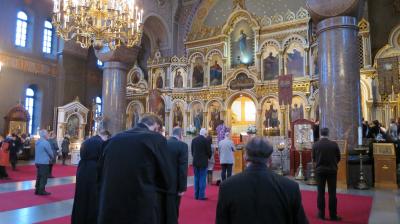 今日はちょうど日曜日だったので、中でミサが行われていましたが、普通に見るカトリック教会のミサと違って、信者の方が、皆さん特に整列をするでもなく、立ってミサが行われていました。