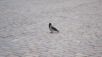 途中、カイサニエミ湾を通り、ハカニエミマーケット広場に来たら、日本では見ないツートンカラーのカラスに出会いました。