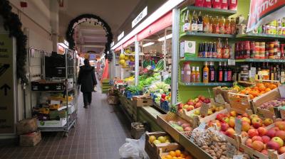 王立ドラマ劇場を通って、エステルマルム地区まで行ったら、大きな市場がありました。