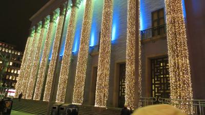 ヒョートリエット広場で見たライトアップされたコンサートホール
