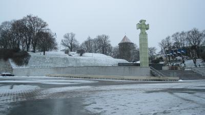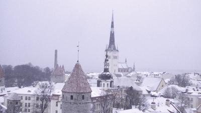 雪が積もって、気温がマイナスの中、タリン旧市街を歩きました・・