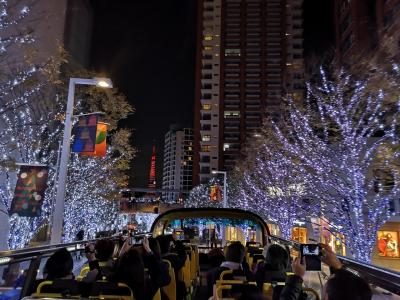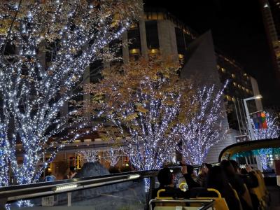 東京駅前発着の東京イルミネーション二階建てバスツアーに出発!こんなのあ...