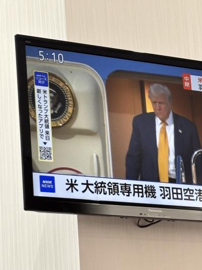 羽田着17:45の予定だったけれど、トランプさんの到着で羽田空港の離着...