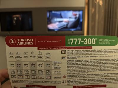 ターキッシュエアライン。2-3-2の横並びの左から2番目。座席がちょっ...