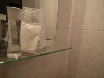 浴室は清潔。お湯の出は問題ない。アメニティは小さな石鹸とシャワージェル(これ何?)