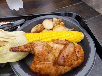 ロティサリースモークチキン、レモネードとビール(本物、アルコールです)