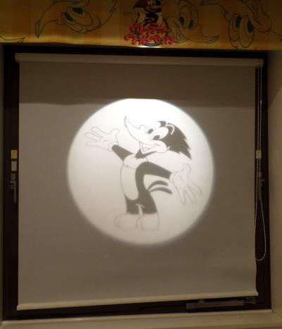 夜にチェックインしたので、窓のブラインドに照らし出されているウッドベッカーがとてもいい感じでした。