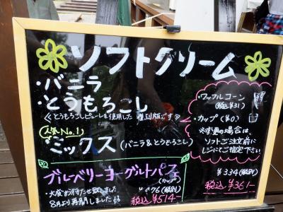 ソフトクリームは、バニラ、期間限定でコーヒー味があり、一番のおすすめは、トウモロコシソフトクリームです。