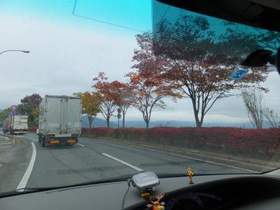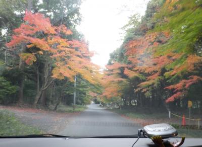車で行きました。駐車場に向かうまでの参道は、紅葉していてきれいでした。