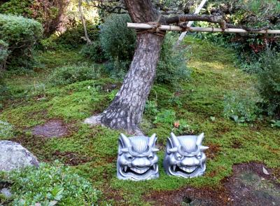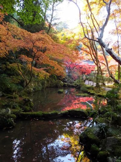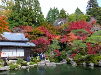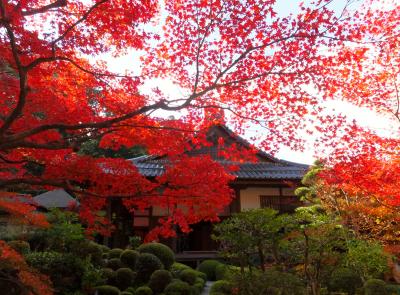 桃山、江戸初期、中期の三庭からなり、老杉蒼松の自然を背景とし、晩秋の深紅に染まる色鮮やかな紅葉は「血染めのもみじ」と広く知られていて、湖東三山一の名園古庭です。
