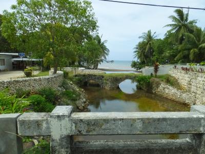 約300mの桟橋を渡るとあります。 橋からは魚がみえます。