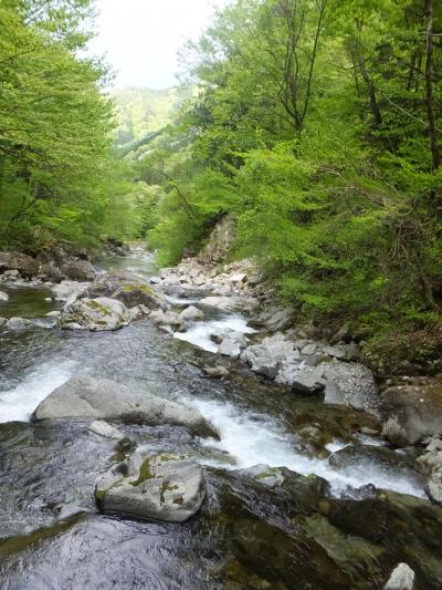 厳立峡横に遊歩道が整備されていて、滝があるとのこと、環境維持の協力金として1人200円ずつ支払い、新緑の中を散策しました。心地よかったです。- 旅行時期
