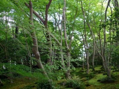 石段のまわりには、緑もみじが綺麗で、苔が敷きしめられています。