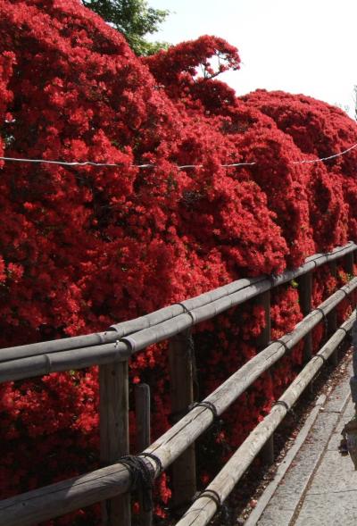 キリシマツツジは、境内へ入る通路の両脇に100M位の長さで植えられています。