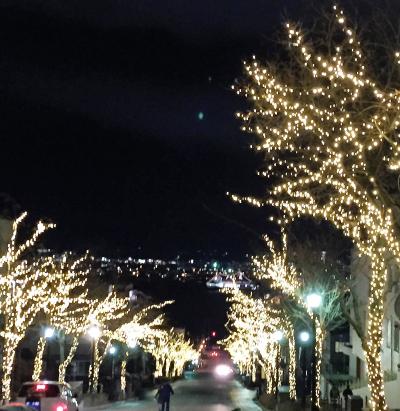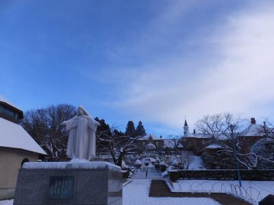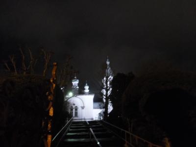 クリスマスシーズンでしたので、夜の暗い中で、うっすらと浮かんだ教会は、素敵に見えました。