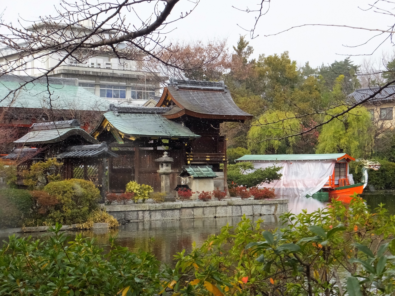 雪の降った京都で一番に浮かんだのは、金閣寺ですが、ものすごい人が押し寄せていたので、あまり人が来ない所と思い、ここに来てみました。