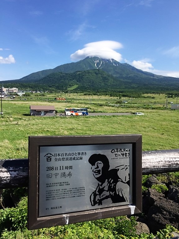 田中陽気さんの 百名山一筆書き全山登頂記念!プレートがあります