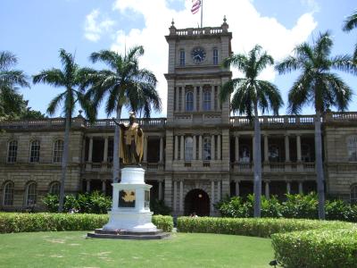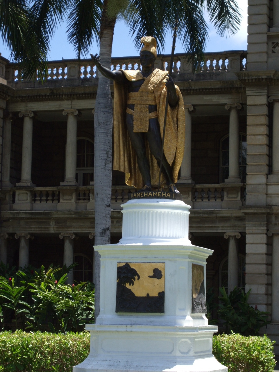 ハワイを統一した初代の王は、金色に輝いていて、綺麗な銅像でした。