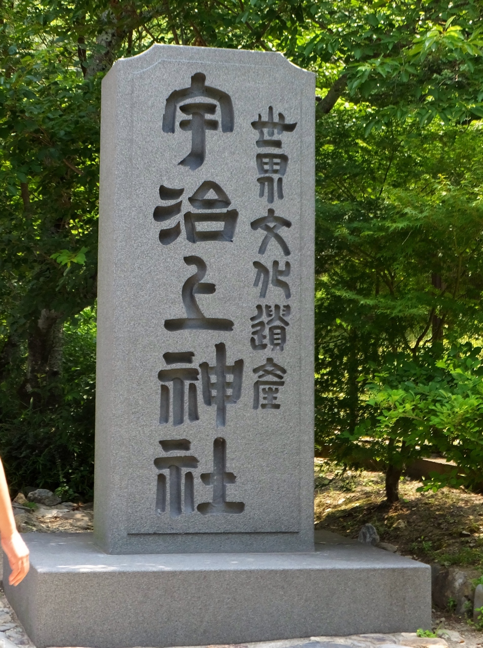 鳥居があり、隣には大きな石に世界遺産宇治上神社と書いてあります。