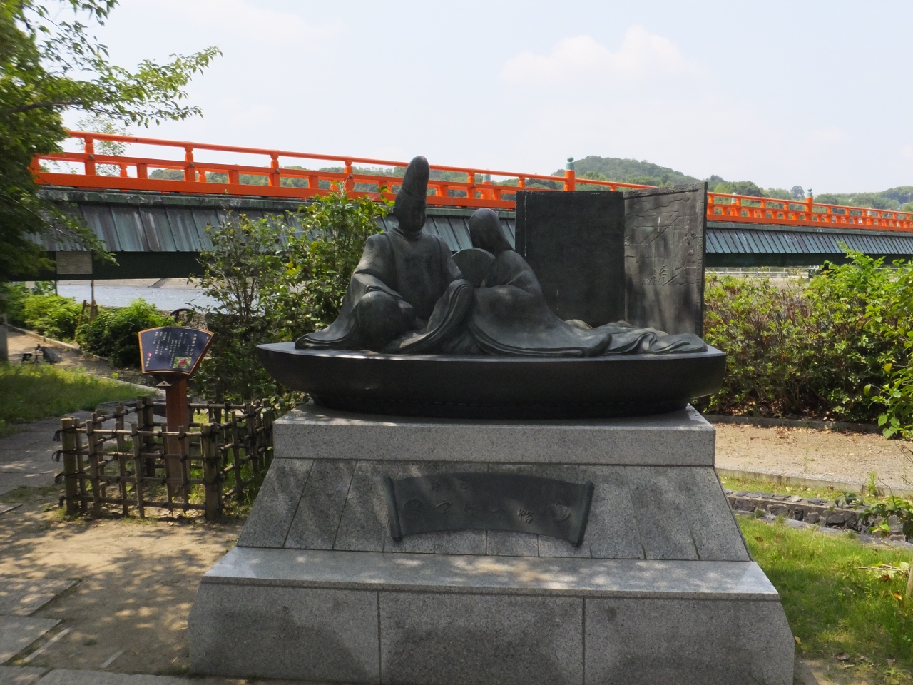 源氏物語、宇治十帖、ヒロイン「浮舟」と「匂宮」が小舟で宇治川に漕ぎ出す有名な場面をモチーフだそうです。