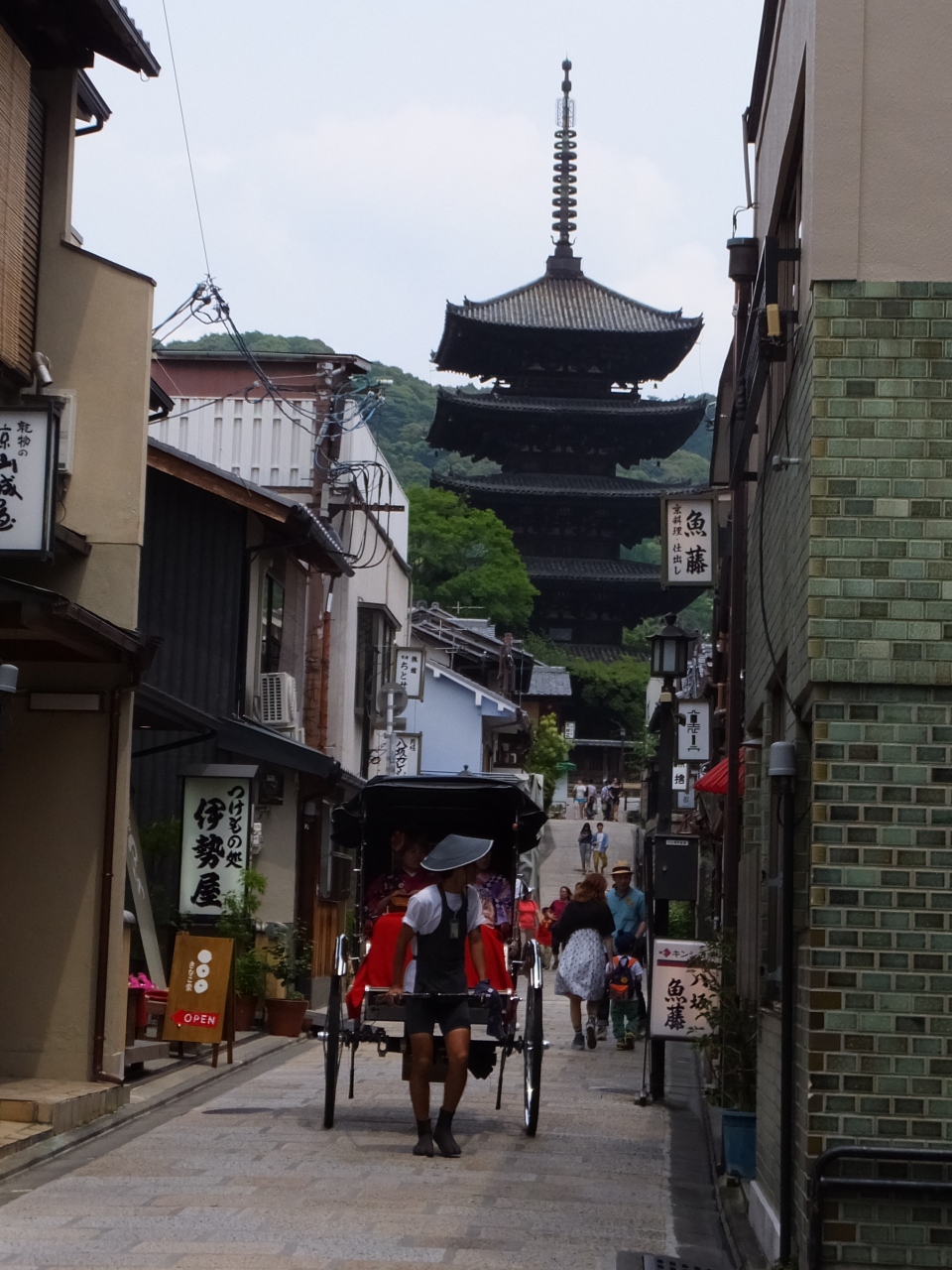八坂通を登っていくと、路地の間に見える五重の塔がとてもいい感じで、京都に来たなと、実感できます。