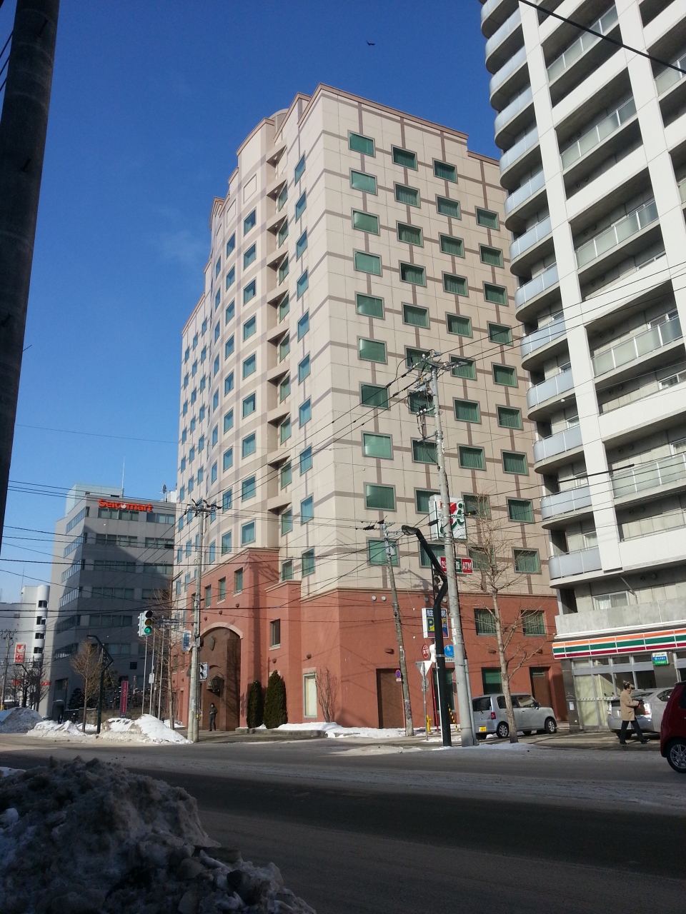 ホテルを出て左手にはセブンイレブン、