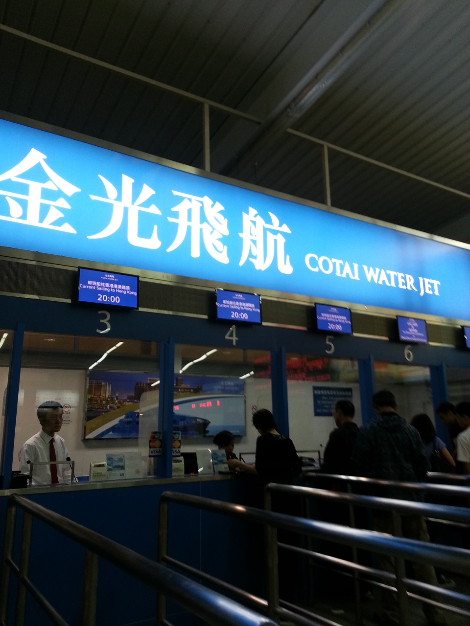 マカオのフェリーターミナルのあるビル入口までも7分位でいけます。途中階段から船乗り場かで階段でずっと繋がっているので、ストレスレス。
