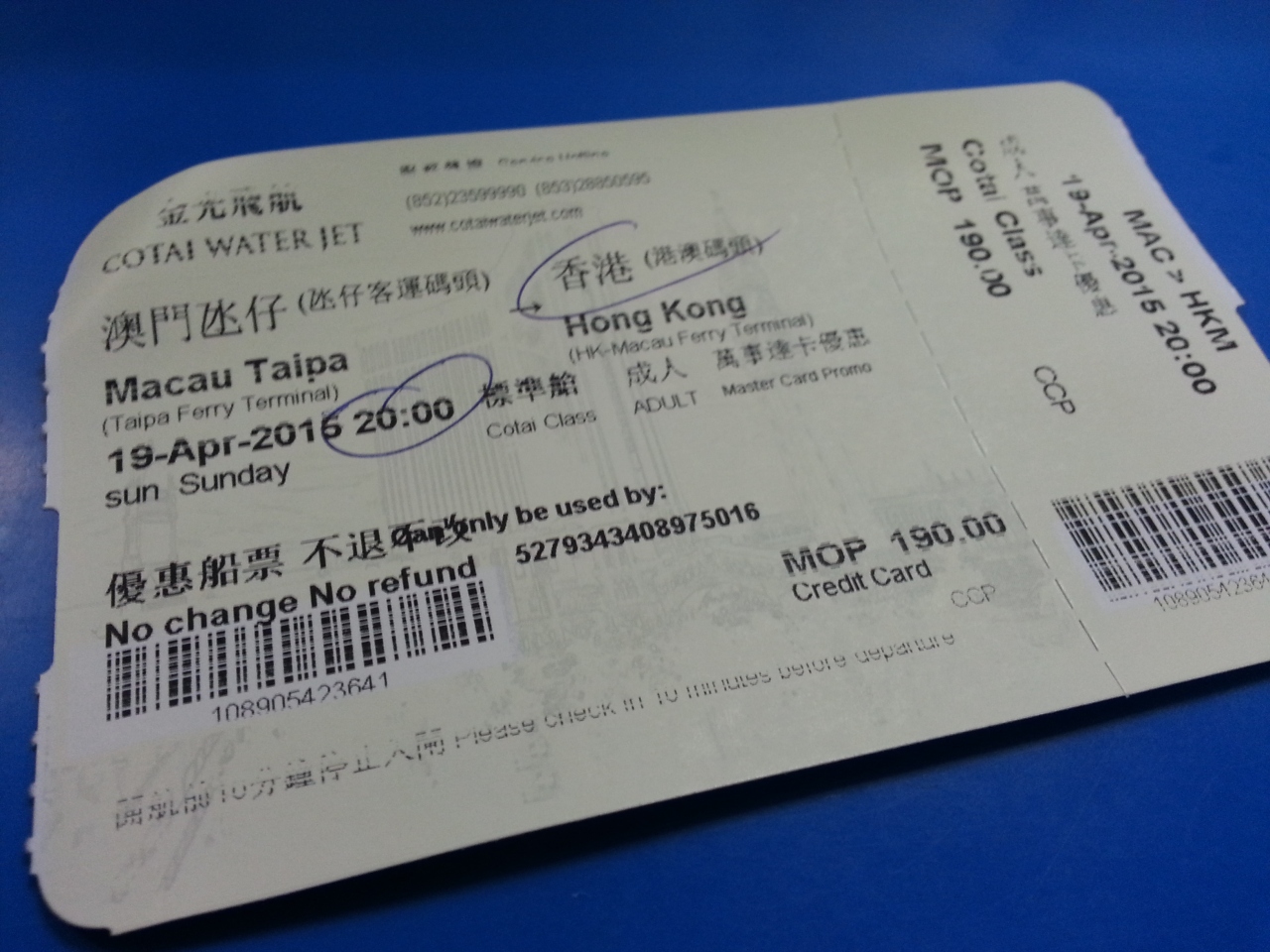 寝るだけには充分すぎる設備で、フェリーターミナルまでのアクセスもいいので、マカオで朝早くから夜遅くまで遊びたい人にはお勧めです。- 旅行時期