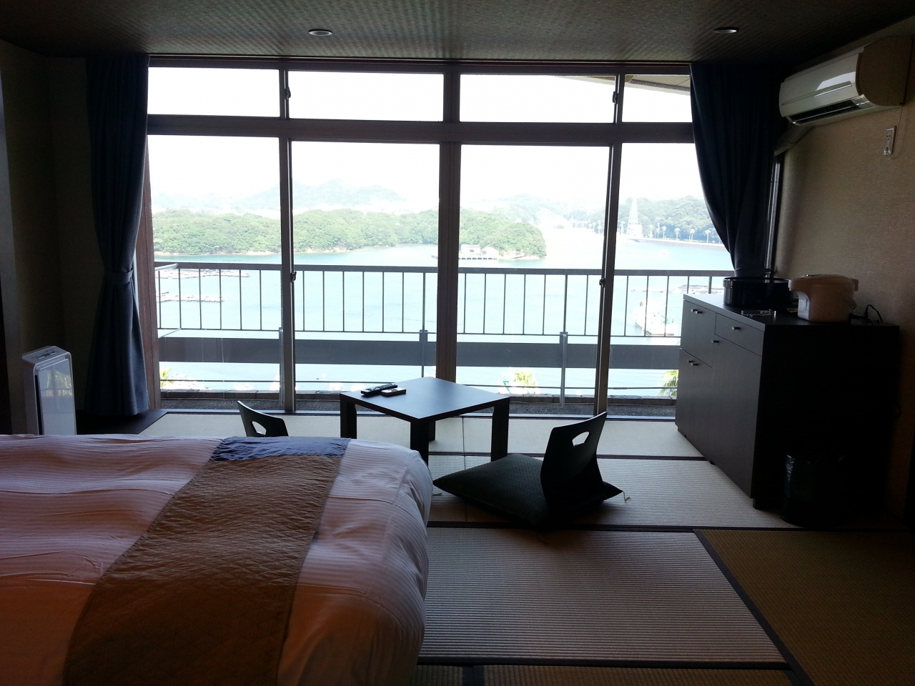 上層階の海側だったので、眺望もよし、部屋も改装したてで清潔で