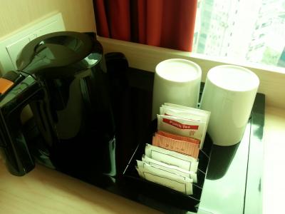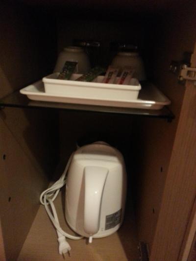 スリッパ、お茶セット、湯沸かし器、無料のボトル水、冷蔵庫、テレビ、ハンガー