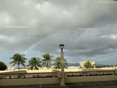2日目、朝からハワイ。到着したら虹が出てました。到着を虹が歓迎してくれ...