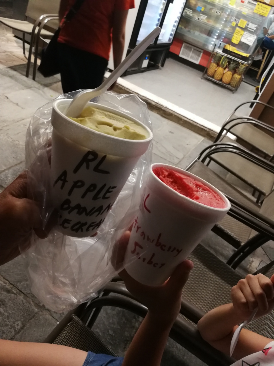 ストロベリーソルベと、バナナアイスを食べました。美味しかったけど半分で半額があればいいのになぁ。半分食べたところで、2つをミックスして味を変えて食べたら、これまた美味しかったです(笑)