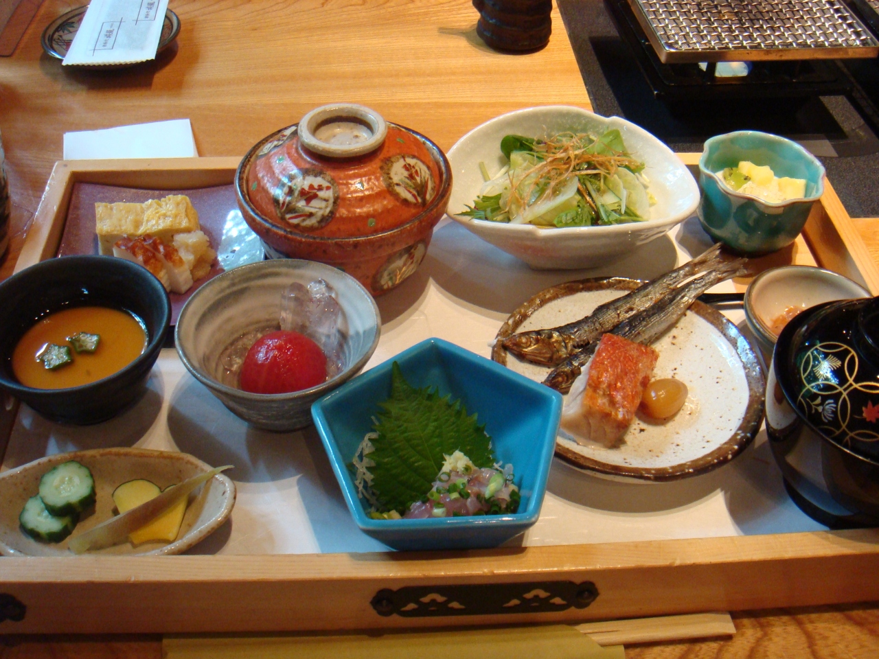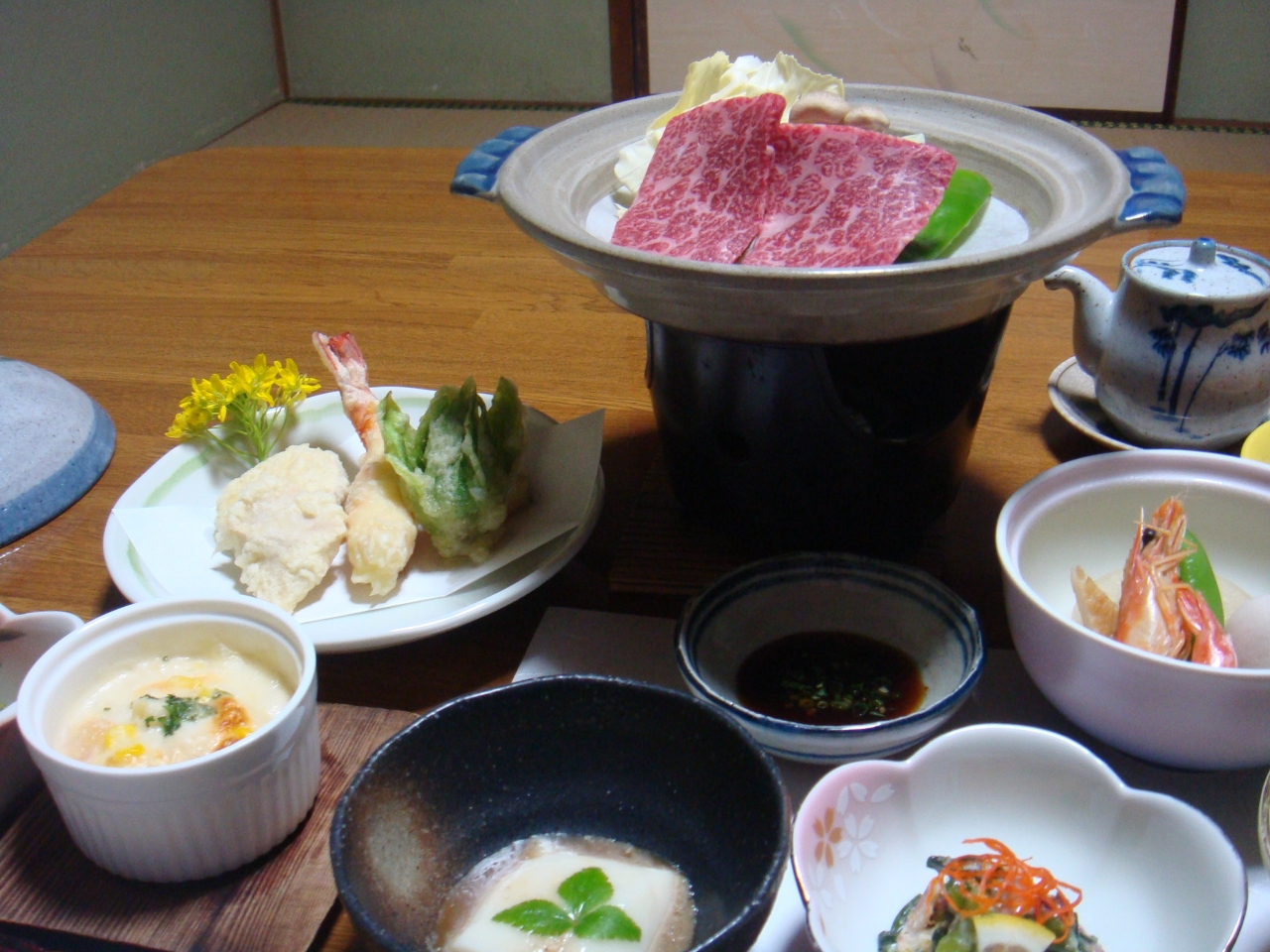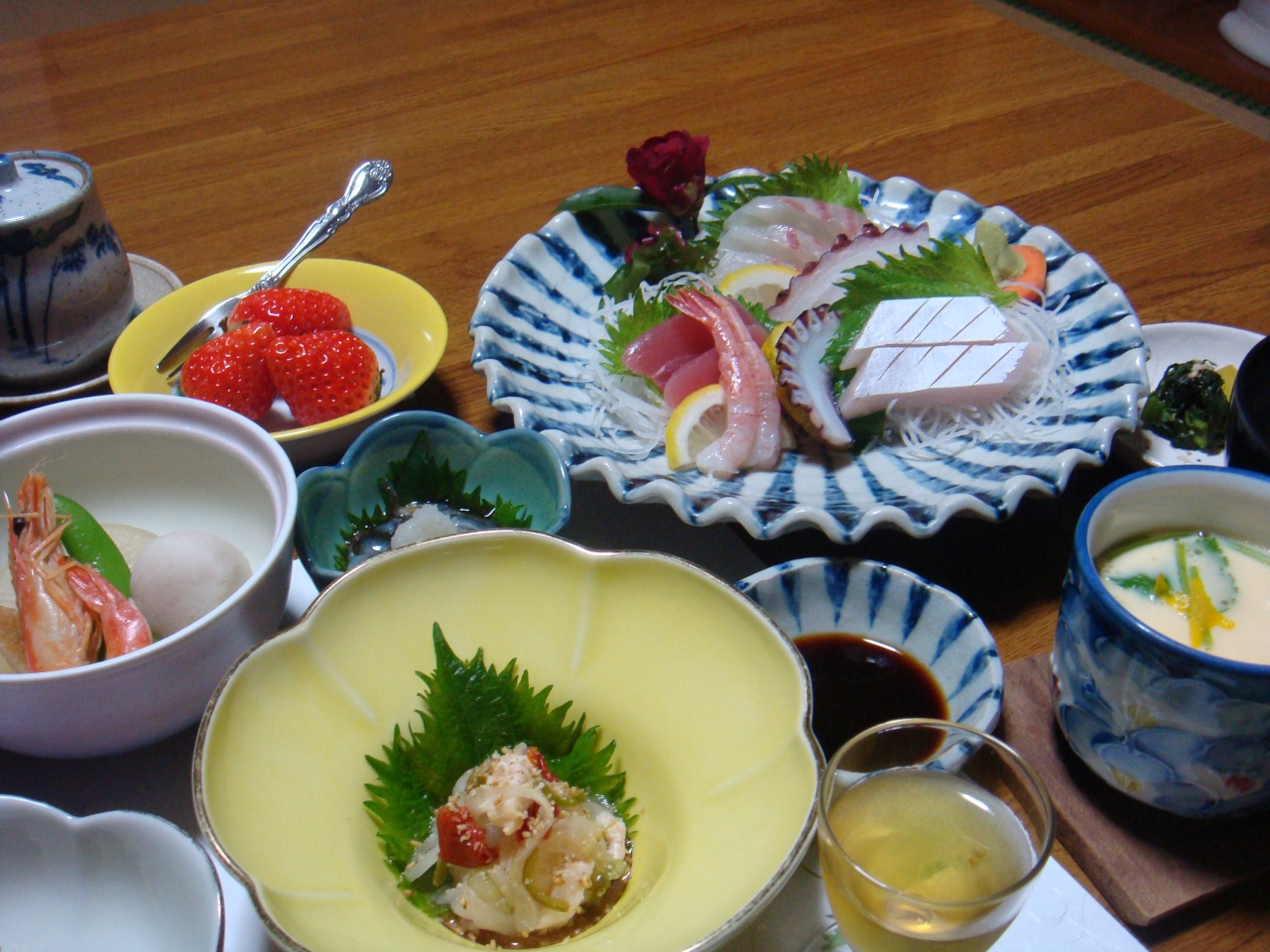 お料理は、料金からすると豪華な感じでした。客室とは別の個室に用意されるのですが、一品出しではないものの、温かいものなどは直前に作ってくだっているようで、逆にのんびり自分のペースで食べるにはよかったです。個室でもやたら人が入ってくるのは落ち着かないし、全量がわからないと途中で力尽きることがありますからね。- 旅行時期