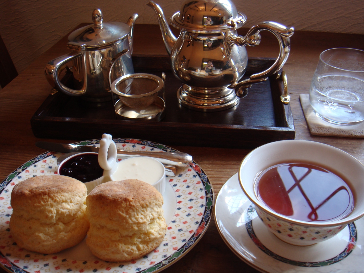 注文してから焼いてくださるスコーンがとても美味しいです!ちょっと小ぶりなので、もう一皿出してください!と思うくらいに。添えられているのもクロテッドクリームですし、本気のスコーンです。そして写真のとおり、器も素敵。