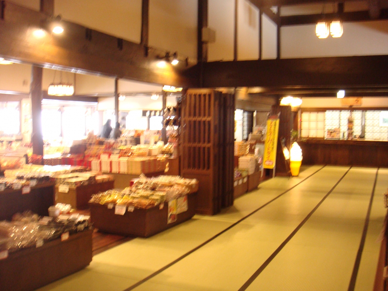 人気の施設なんだと思いますが、平日ゆえか空いていたので、一つの湯船に二人以上が入っている状態がなかったほどです。休憩所も空いていて、思う存分ゴロゴロさせていただきました。食事処、喫茶も雰囲気がよいですし、バスターミナルよりこちらのほうがお土産ものも多いです。置いてあるものはちょっと違いましたけど。