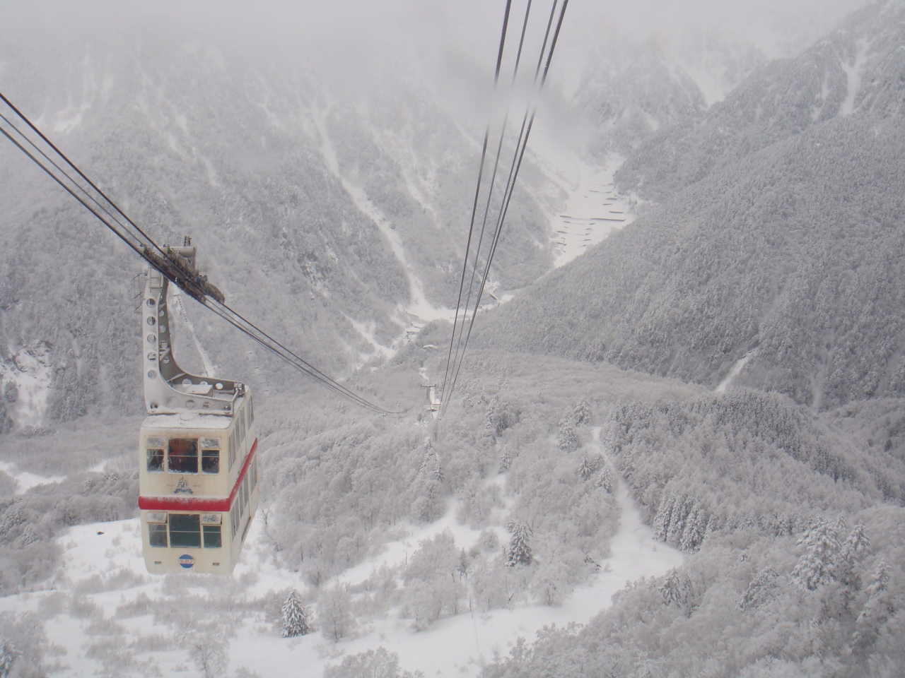 上り下りともに、第一が00分・30分発で、第二が15分・45分発でしたので、ただ上って降りるだけなら一時間です。冬季だからか、中間しらかば平駅のレストランと、頂上西穂高口駅のトイレは利用できませんでした。とくにのんびり過ごすつもりの方は中間駅でトイレに入っておいたほうがよいです。