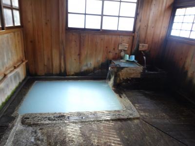 大きな混浴の、白濁した露天風呂が有名なところですね。でもそれ以外にも男女別の小さめのお風呂が沢山あって、ちょっとずつ泉質も異なるようで、ほんとうにお風呂が楽しいところだと思います。期待どおりです。