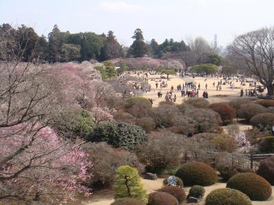 「好文亭」は有料ですが(190円だったかな?)、建物も見学できるうえにちょうど園内を見晴らせる部屋があり、上から見ると梅のグラデーションがきれいですよ。
