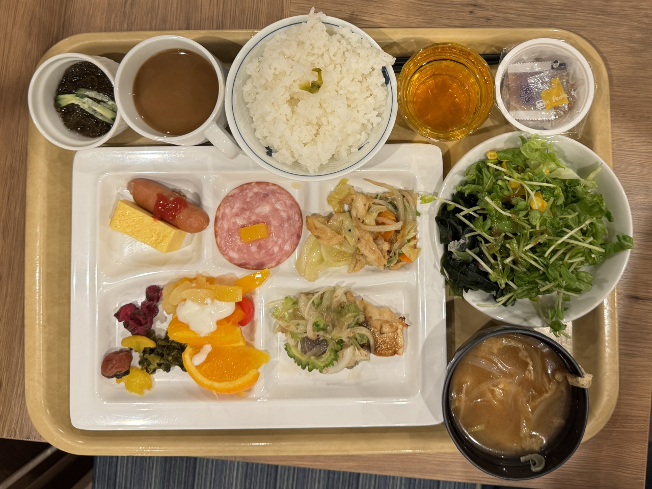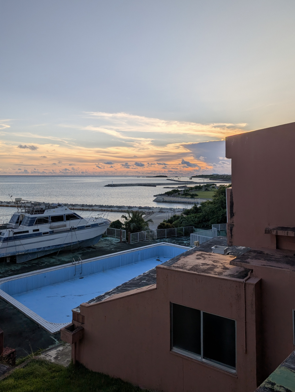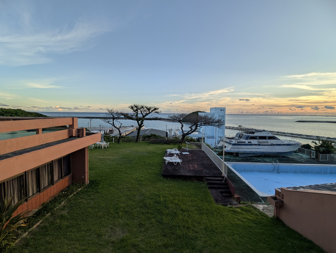 朝食は和定食の提供だが、出来合いのものもあり〝地のもの〟を楽しみにしている方には少し物足りないであろう。しかし兼城港のすぐ近くにあるため各室オーシャンビューの眺望は保証されている。宿泊した日は天気も良かったために〝日の入り〟を堪能することができ、マジで感動した。