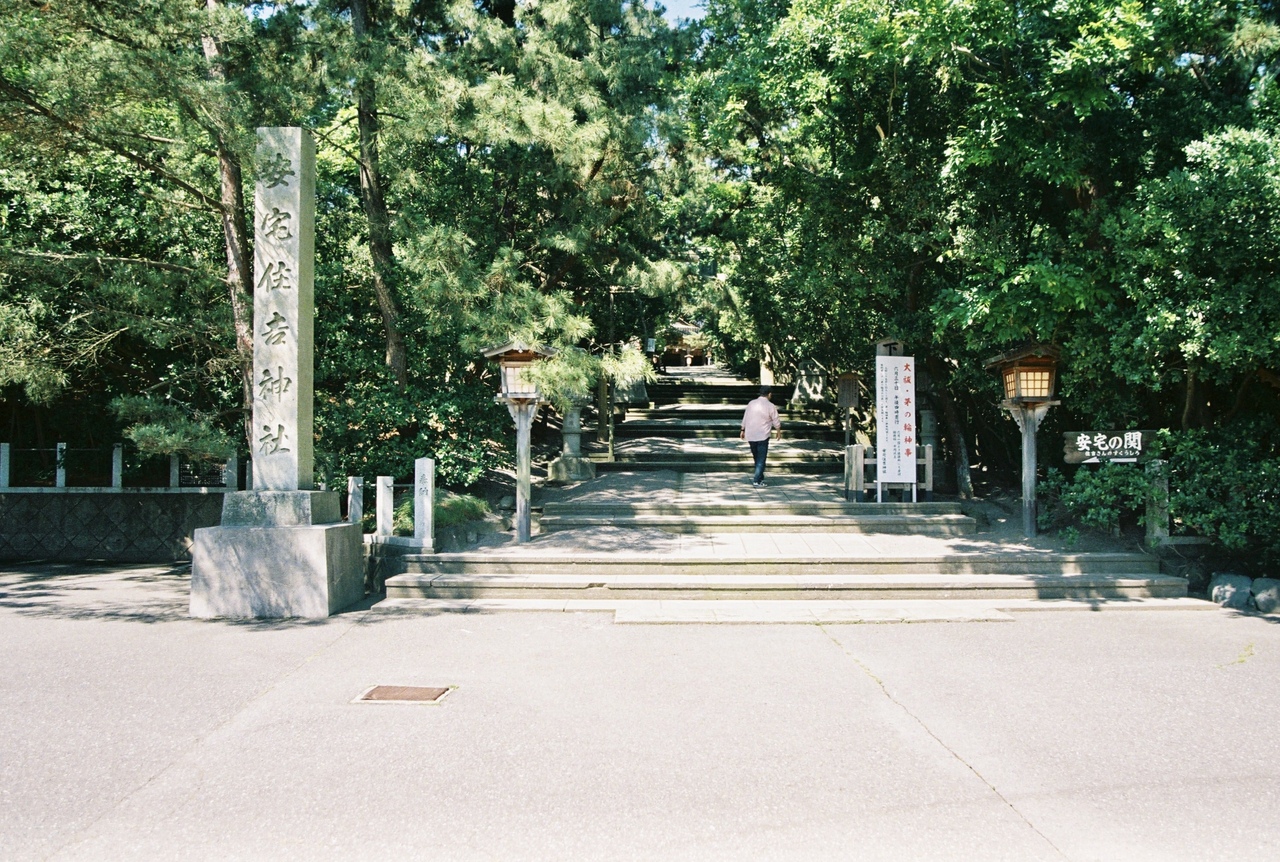 安宅の関址を敷地内に抱える安宅住吉神社。創建が奈良時代に遡ることから、安宅の関が神社内に設けられたと思いがちですが、実は三度の移設の後この場所に鎮座することになったため、関址近くに神社が来たというのが事実です。